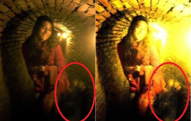 Una fotografía tomada hace tres años en el "Paseo de los Túneles" refleja la presencia de un supuesto fantasma intentando tomar la mano de Carolina, una joven sampedrina. Fue difundida este lunes por el Grupo Conservacionista de Fósiles que entregó un informe con el análisis de la imagen.