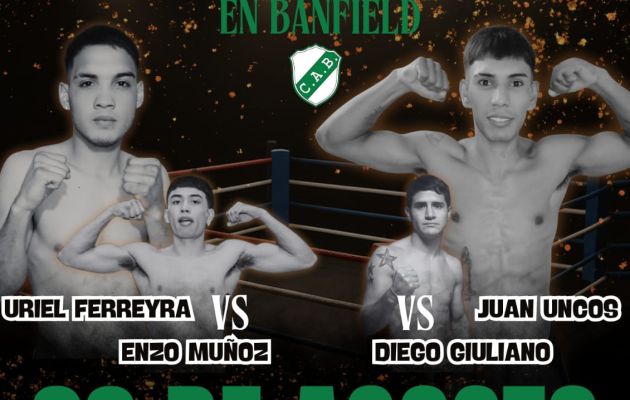 Este sábado desde las 21.00, el Gimnasio de calle Auli y 11 de Septiembre de Banfield, será sede de una nueva velada de box con la presencia de Uriel Ferreyra y Juan Unco, púgiles de Banfield Boxing, en un doble fondo profesional. Previamente, se disputarán una importante cantidad de combates Amateur.